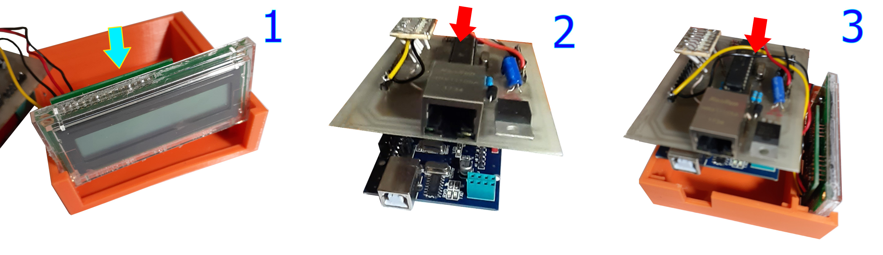 - Birleşik ENC28J60 modülünü ve Raduino modülünü kutuya yerleştir.